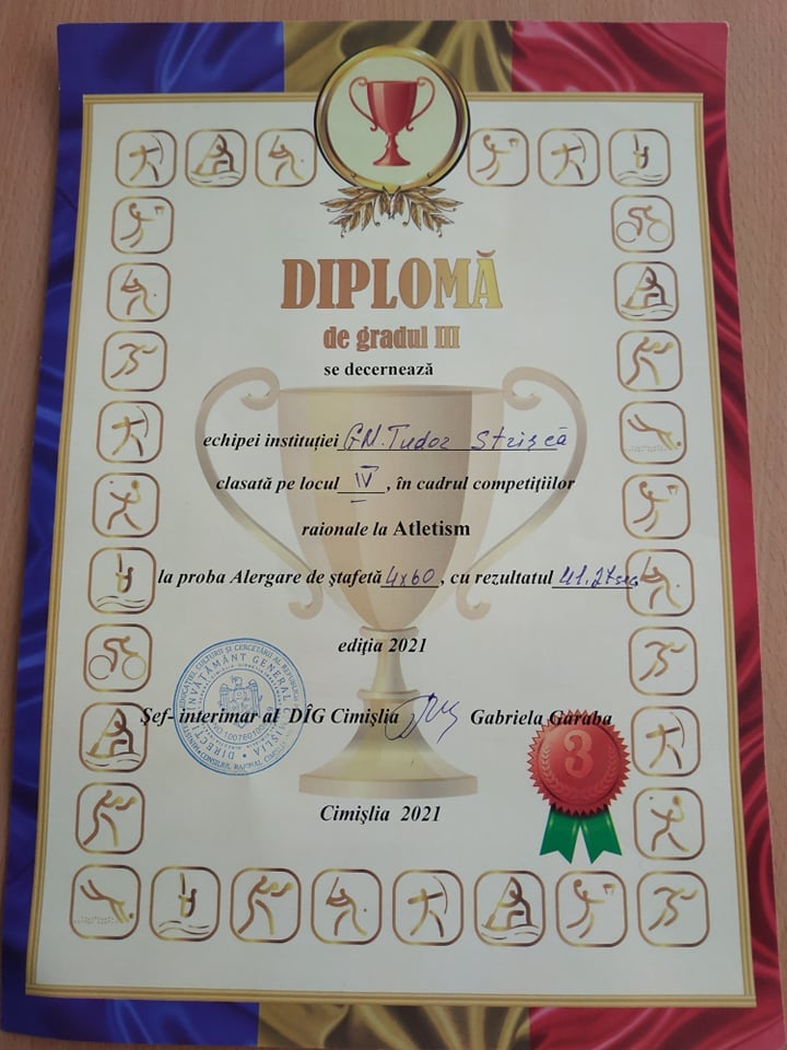 – Locul II – în cadrul Competițiilor raionale ”Starturi vesele”, care s-au desfășurat la data de 02.10.2021, profesor Anatolie Căinăreanu.